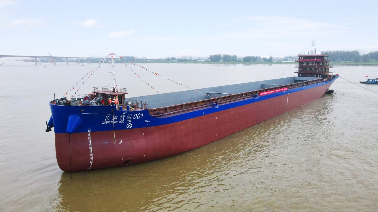8月14日,工業(yè)和信息化部“綠色智能內(nèi)河船舶創(chuàng)新專項(xiàng)”示范船舶7500噸綠色智能船“長航貨運(yùn)001”號正式下水。