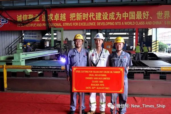 8月20日上午9:00,新時代造船在鋼加車間舉行56#156500噸油船開工點火儀式,該船船體零部件開始切割預制。56#156500噸油船總長274.3米,型寬48米,型深23.2米,設計吃水16米,結(jié)構吃水17.15米,載重156500噸,入ABS船級社,船東是希臘Seaworld公司。