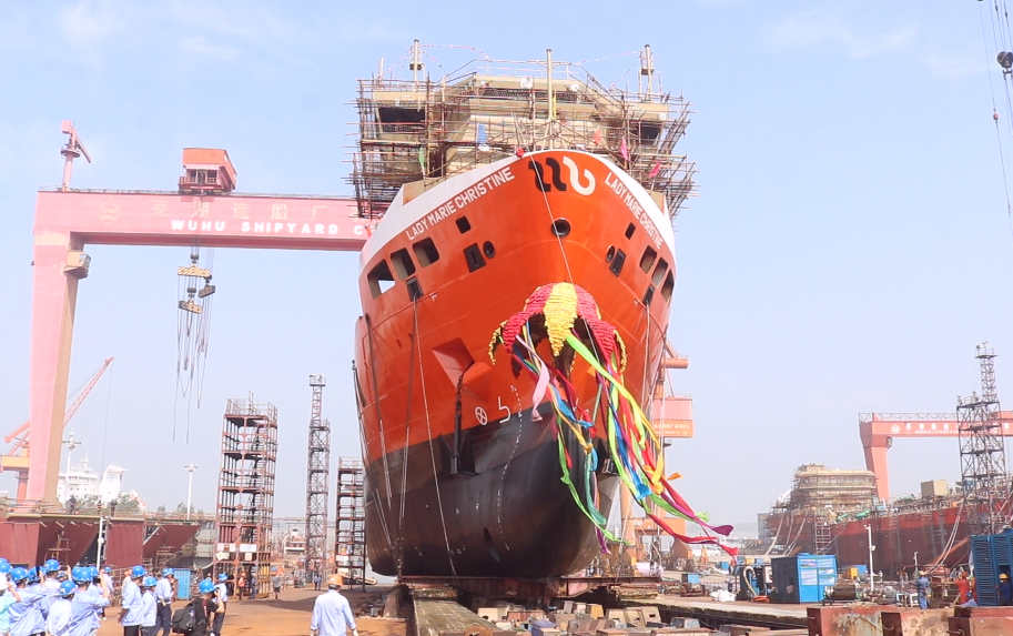 8月25日,蕪湖造船廠為荷蘭船東建造的5800噸級冰區(qū)加強多用途船順利下水。這是該系列船型的首制船,船東Wijnne Barends公司、DNV船級社以及蕪湖造船廠經(jīng)營層共同見證下水盛況。