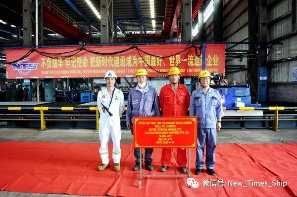 9月17日,新時(shí)代造船在東區(qū)鋼加車間舉行船舶點(diǎn)火開工儀式,28#210000噸散貨船船體結(jié)構(gòu)件開始切割預(yù)制。生產(chǎn)管理部負(fù)責(zé)人陳月鋒、質(zhì)量管理部負(fù)責(zé)人秦峰與新加坡船東Eastern Pacific Shipping Pte. Ltd.(EPS)現(xiàn)場(chǎng)經(jīng)理倪杰等出席活動(dòng)。