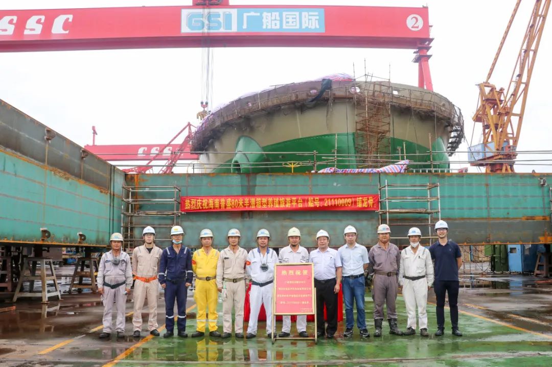 廣船國際80米半潛箱型養(yǎng)殖旅游平臺舉行龍骨鋪設儀式