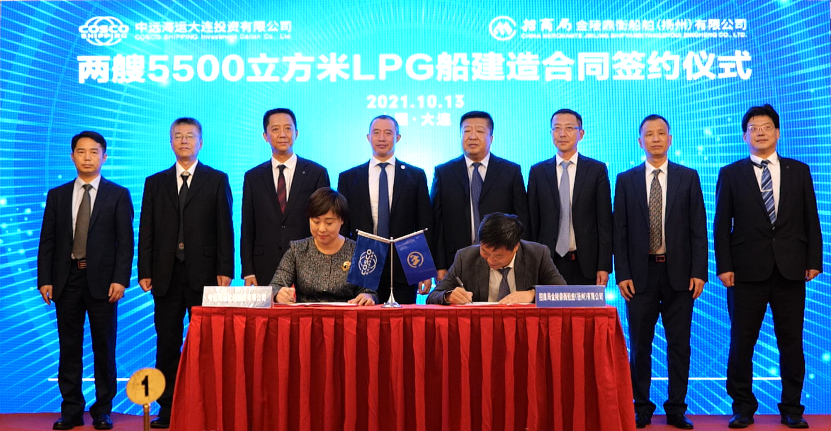 10月13日,招商局金陵鼎衡船舶(揚(yáng)州)有限公司與中遠(yuǎn)海運(yùn)大連投資簽訂兩艘5500立方米LPG船訂單。
