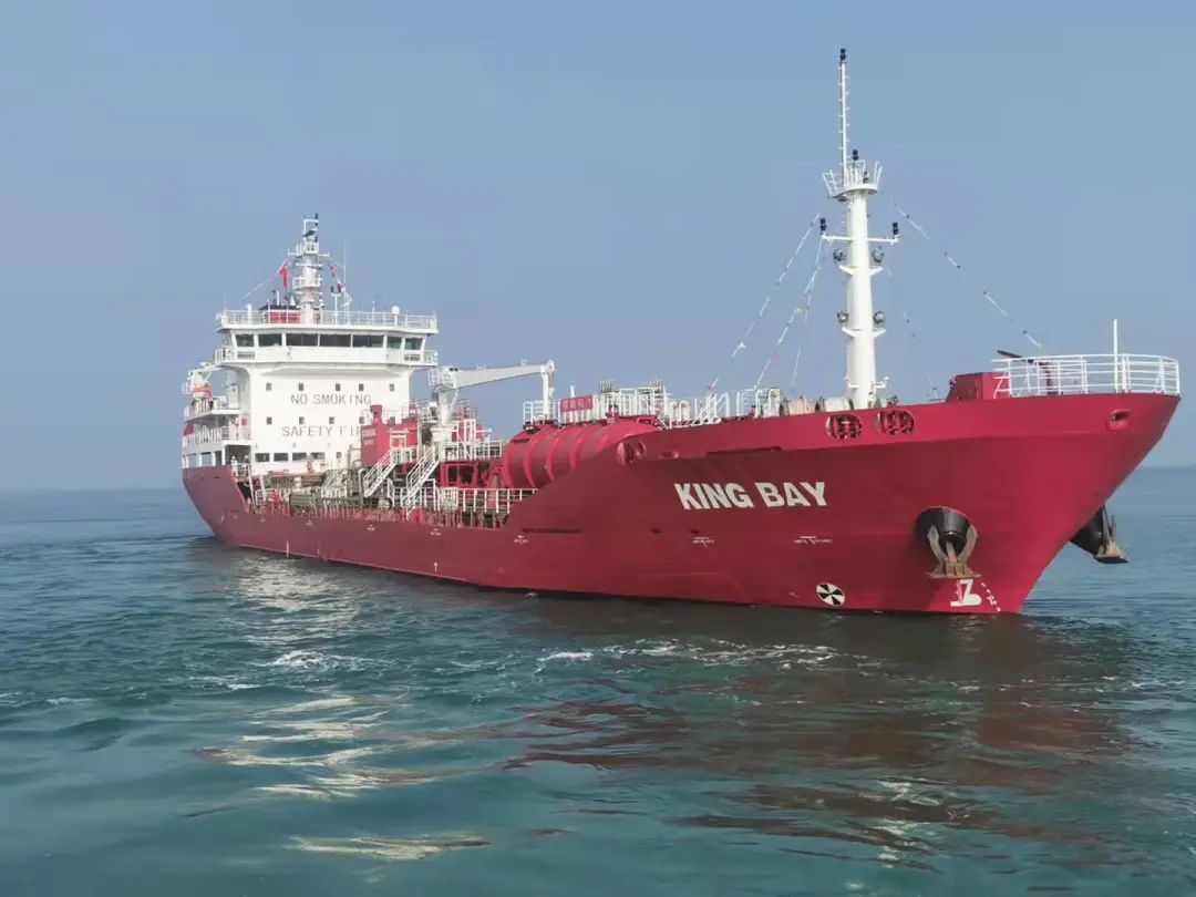 10月26日,威海金陵續(xù)建的首艘6500DWT化學品船“KING BAY”完成試航。