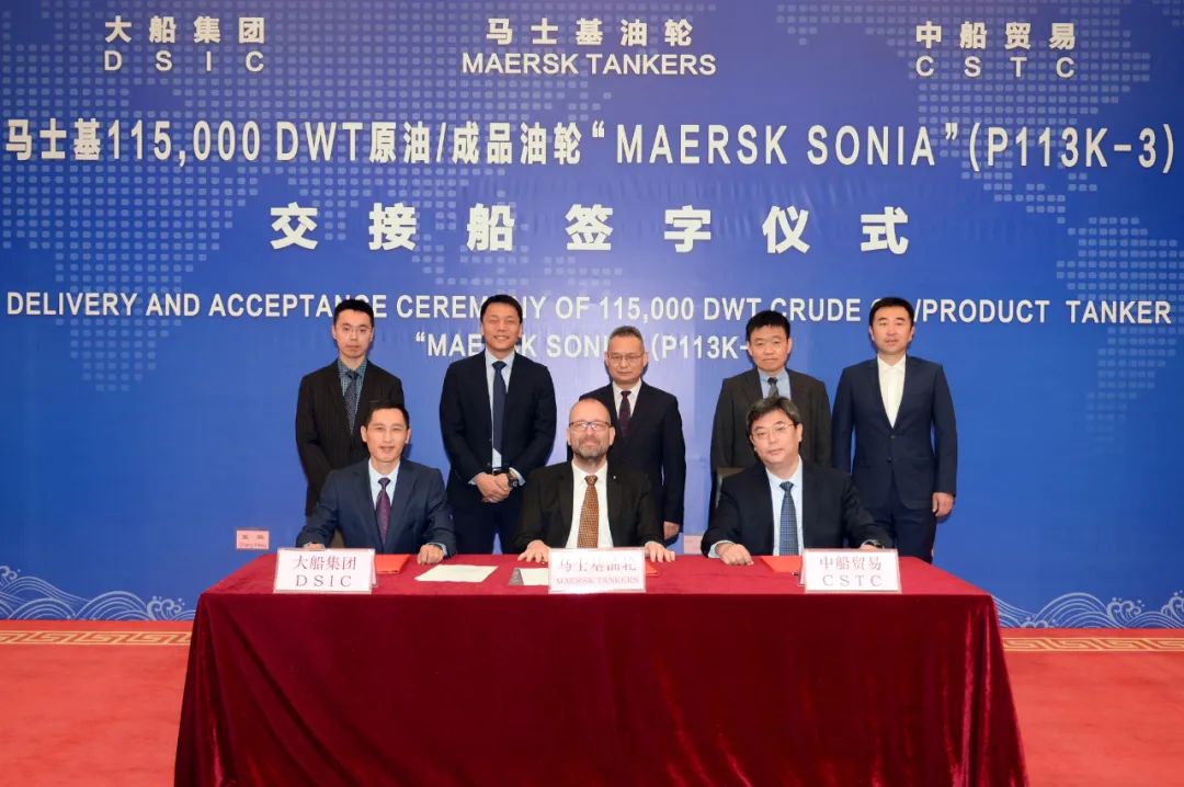 10月28日,中國(guó)船舶集團(tuán)旗下大船集團(tuán)為馬士基油輪建造的11.5萬(wàn)噸原油/成品油船“馬士基索尼亞”輪交付。