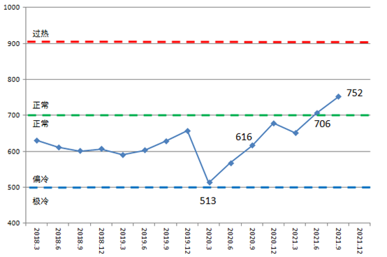 2021年三季度中國(guó)造船產(chǎn)能利用監(jiān)測(cè)指數(shù)(CCI)為752點(diǎn),比2020年三季度提高136點(diǎn),同比增長(zhǎng)22.1%;比2021年二季度增加46點(diǎn),環(huán)比增長(zhǎng)6.5%。