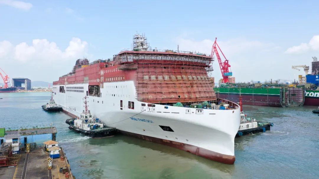 廣船國(guó)際2500客/3800米車道豪華客滾船出塢