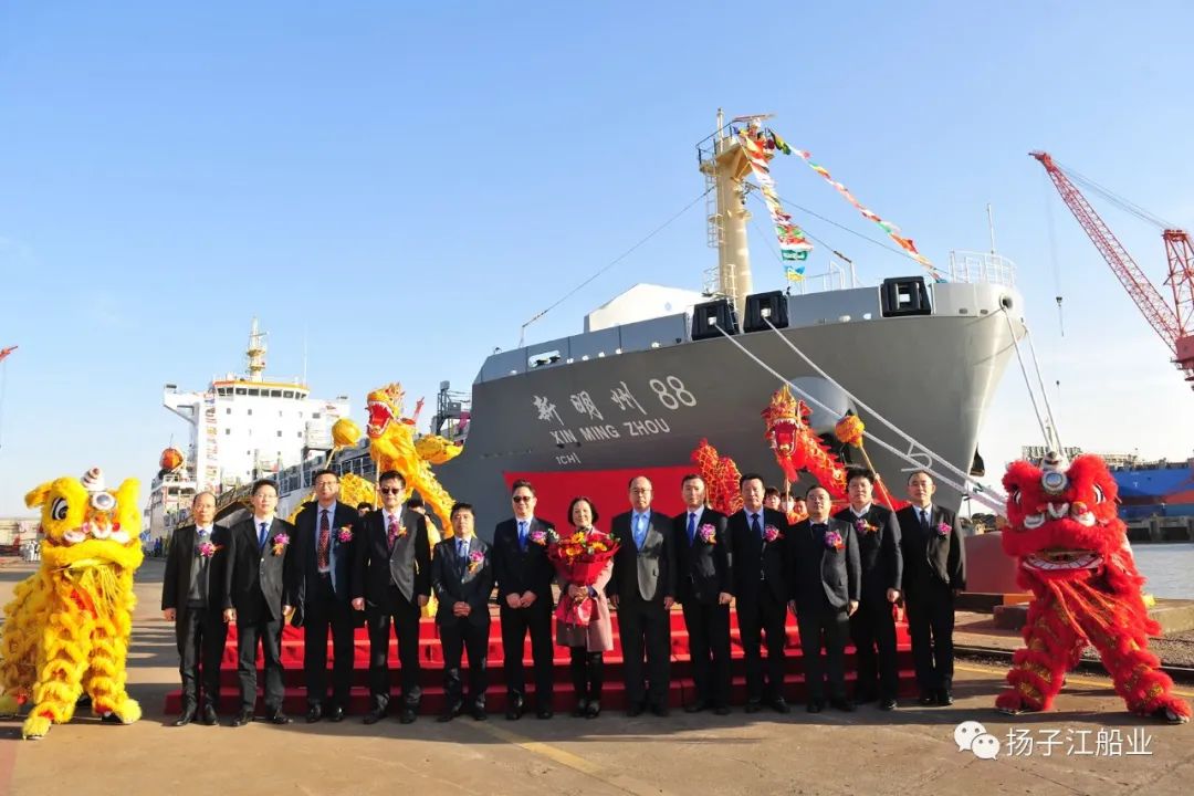11月22日,揚子江船業(yè)集團為浙江海港集團、寧波遠洋建造的首制1000TEU集裝箱船“新明州88”輪命名交付。