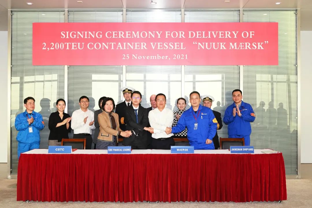 11月25日,中國船舶集團(tuán)旗下江南造船為工銀租賃建造的批量2200箱支線箱船的最后一艘“NUUK MAERSK”交付,意味著中國船舶集團(tuán)與馬士基集團(tuán)在箱船領(lǐng)域的首次合作圓滿成功。