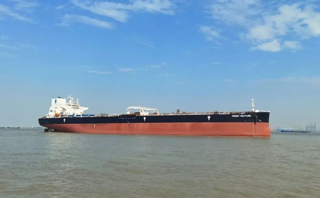 11月25日,中國船舶集團旗下上海外高橋造船有限公司為挪威前線(Frontline)船東建造的10.99萬噸阿芙拉油輪系列最后一艘船“FRONT FEATURE”輪簽字交付。Frontline公司監(jiān)造組經(jīng)理拉蒙、上海外高橋造船有限公司市場營銷部副部長李輝分別代表雙方簽署交船協(xié)議。船東監(jiān)造組、勞氏船級社以及公司相關(guān)部門代表見證簽約。