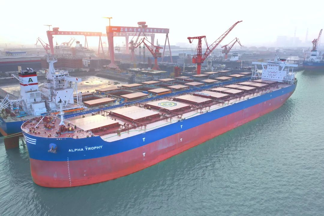 1月1日,中國船舶集團有限公司旗下上海外高橋造船有限公司聯(lián)合中國船舶工業(yè)貿(mào)易有限公司為希臘Alpha Bulkers公司量身訂造的21萬噸紐卡斯爾型散貨船“ALPHA TROPHY”號簽字交船,這是2022年中國船舶企業(yè)完工交付的第一艘船,實現(xiàn)開門紅,開啟中國船舶制造業(yè)2022年昂揚奮進新征程。
