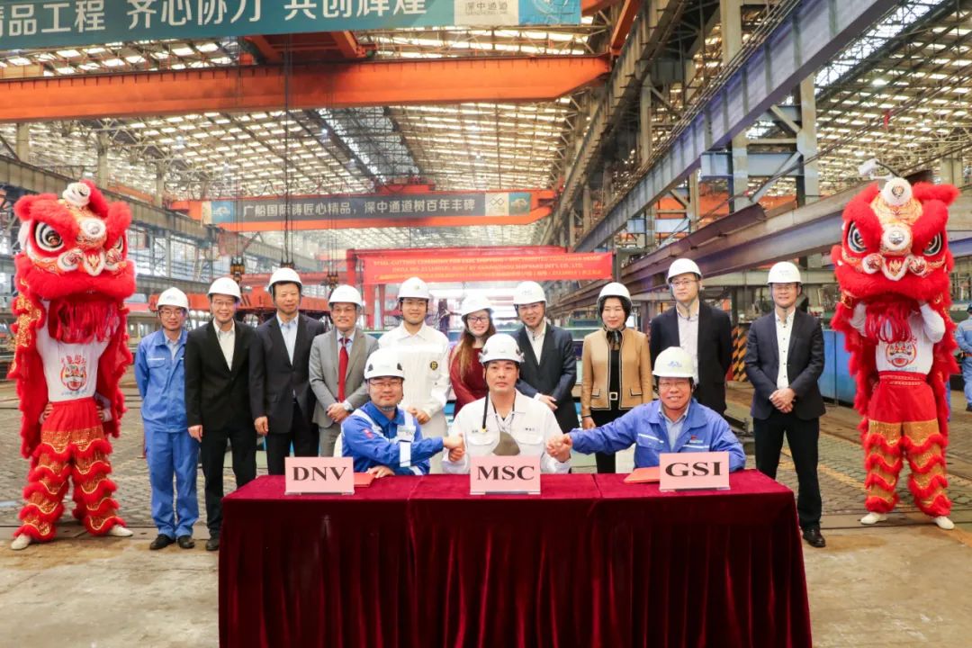 該船項(xiàng)目經(jīng)理?xiàng)顐ヅc船東、船檢代表簽署開(kāi)工確認(rèn)文件,廣船國(guó)際副總經(jīng)理周旭輝、中國(guó)船舶租賃營(yíng)銷(xiāo)總監(jiān)何芳、DNV船級(jí)社廣州區(qū)域總經(jīng)理池韶光、海德利船務(wù)董事總經(jīng)理董建忠、中國(guó)船舶貿(mào)易歐洲部總經(jīng)理張大蕾等見(jiàn)證簽字。