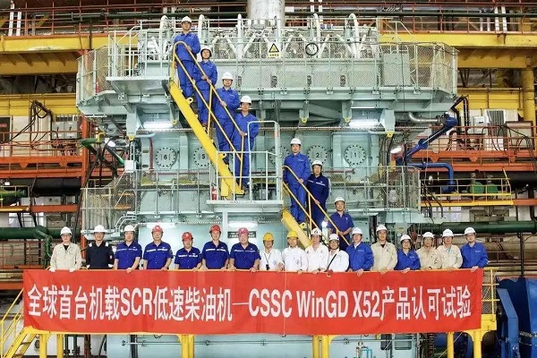 2021年7月22日,由中國(guó)船舶集團(tuán)旗下中船動(dòng)力集團(tuán)自主研發(fā)、大連船柴建造的全球首臺(tái)機(jī)載SCR(選擇性催化還原系統(tǒng))船用低速機(jī)CSSC WinGD X52正式向全球發(fā)布。