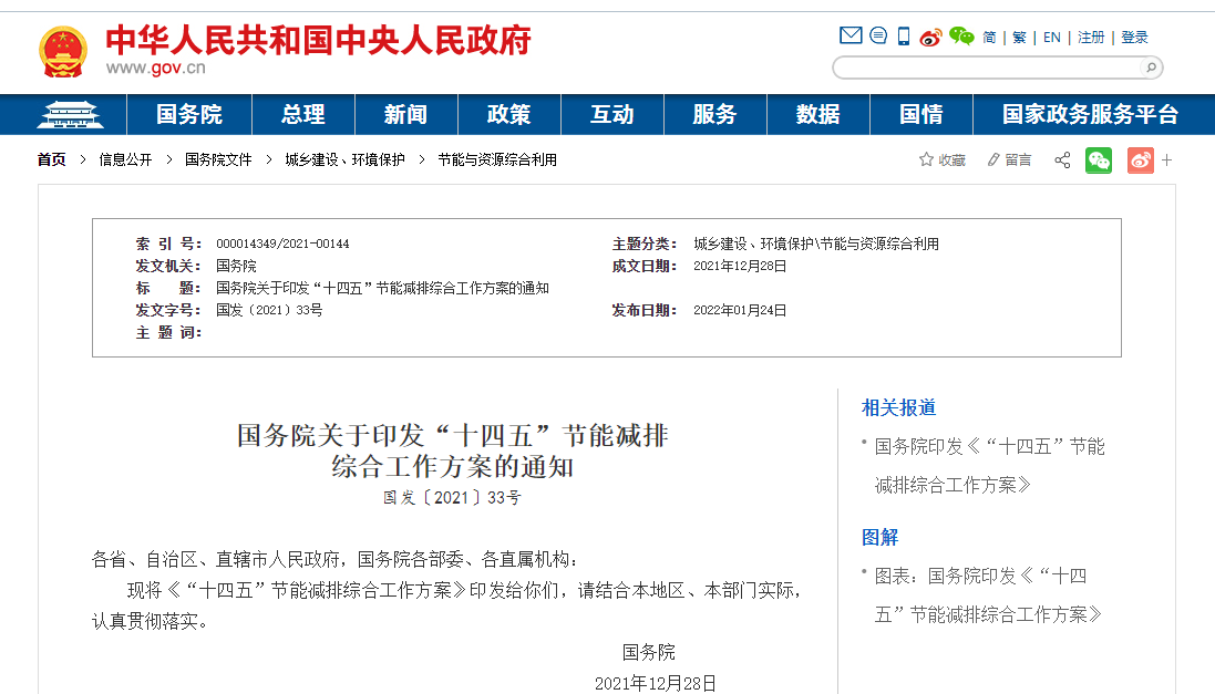 國(guó)務(wù)院印發(fā)《“十四五”節(jié)能減排綜合工作方案》