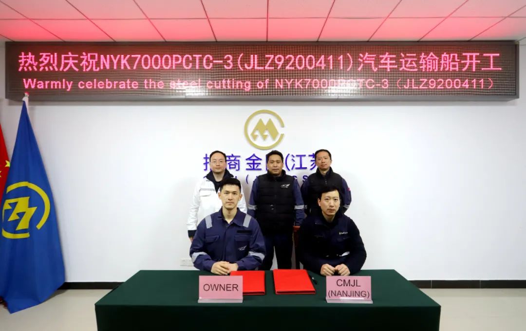 2月10日,招商工業(yè)南京金陵船廠為日本郵船(NYK)集團(tuán)建造的第三艘7000車位液化天然氣汽車運輸船開工。船東駐廠代表Koyama先生、DNV船級社駐廠代表及南京金陵項目組等有關(guān)人員參加了開工儀式。