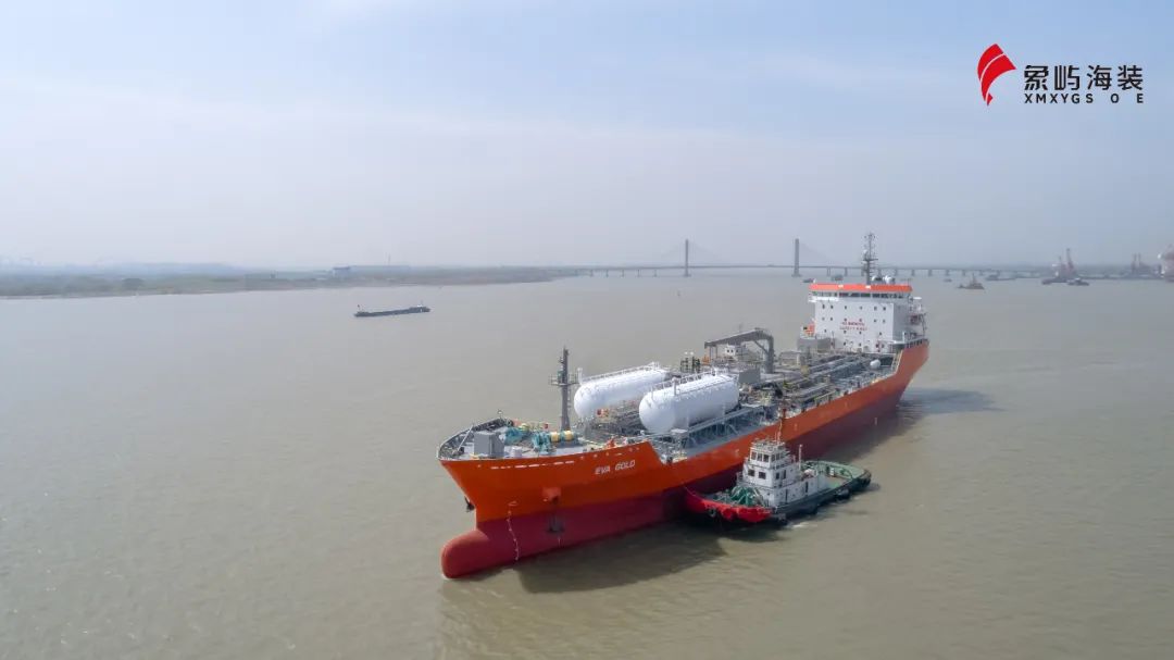 3月15日,象嶼海裝為日伸海運建造的首制19900噸雙燃料不銹鋼化學品船“EVA GOLD”號交付。