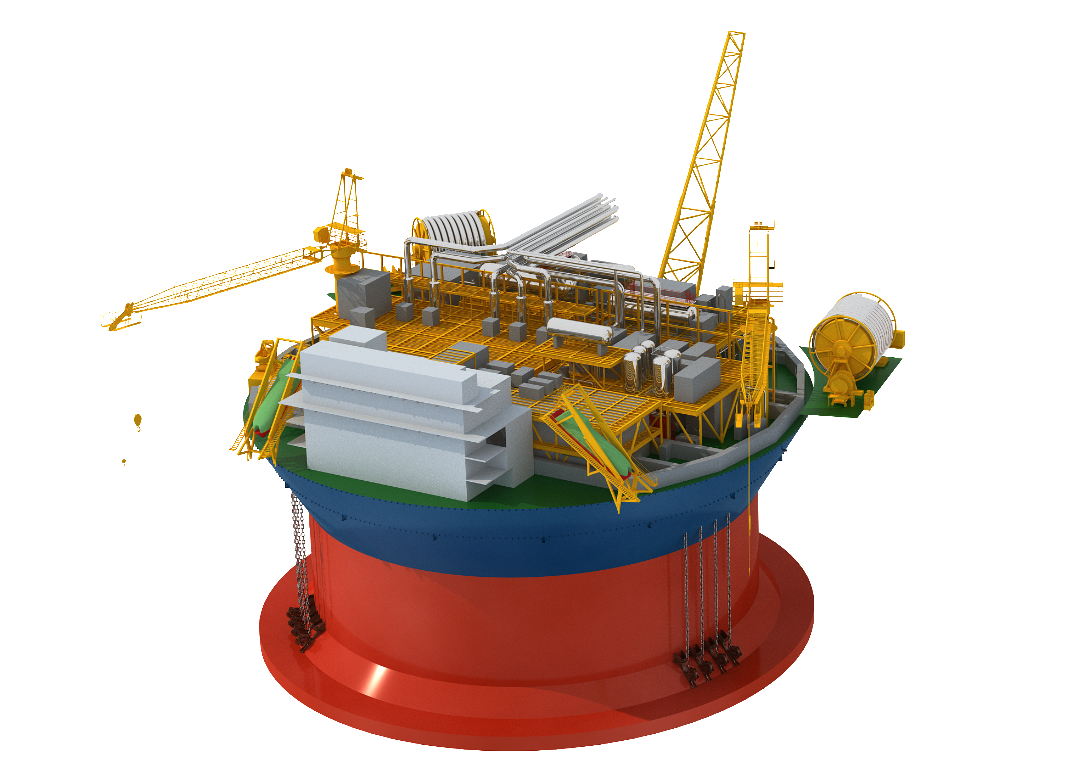 該圓筒型FPSO工作水深約324米,高度36.5米,主甲板最大直徑達(dá)94米,面積相當(dāng)于13個(gè)標(biāo)準(zhǔn)籃球場,最大排水量達(dá)10萬噸,接近“遼寧艦”的2倍。