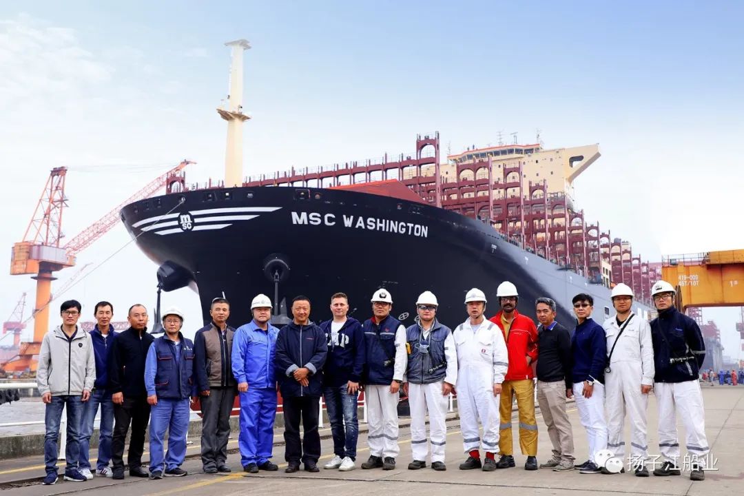 3月24日,由揚子鑫福建造目前揚子江船業(yè)集團建成完工的最大集裝箱船14000TEU雙燃料集裝箱船“MSC WASHINGTON”輪云交付。TIGER CONTAINER ONE LIMITED董事Mark W Hilton與揚子江船業(yè)集團副總經(jīng)理張濤、揚子鑫??偨?jīng)理楊雪彥等通過視頻交流方式,完成“MSC WASHINGTON”輪云交付。