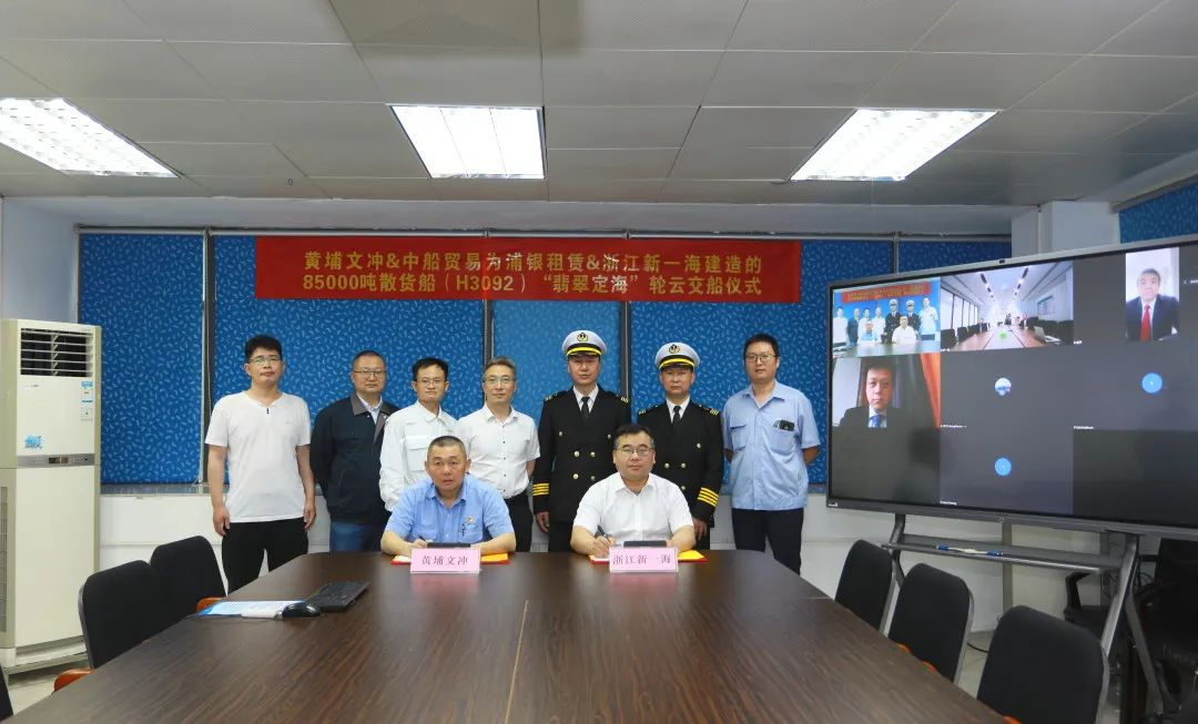 4月13 日,中國船舶集團黃埔文沖公司為浙江新一海海運有限公司建造的85000噸散貨船“翡翠定海”輪交付。該型船由黃埔文沖自主研發(fā)設(shè)計,船舶總長228.90米,船寬 36.00米,型深20.15米,設(shè)計吃水11.80米,其油耗、航速、艙容、環(huán)保等性能指標均達到世界領(lǐng)先水平。