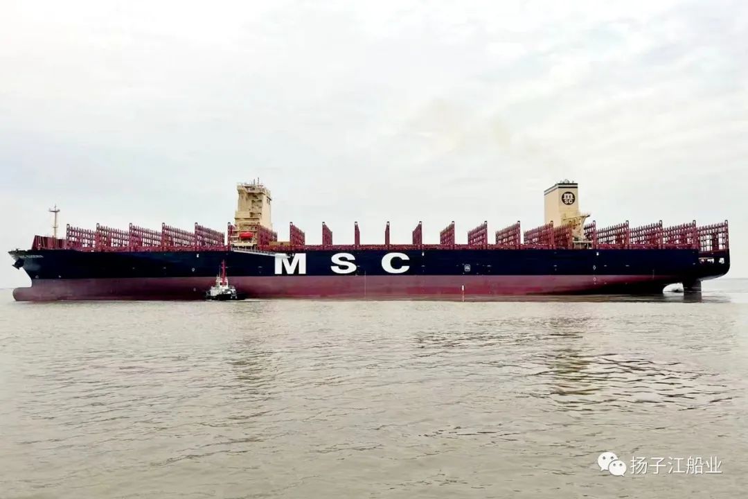 4月18日,揚子江船業(yè)集團揚子鑫福造船為SEASPAN船東建造的12200TEU超大型集裝箱船“MSC EUGENIA”輪離廠開啟首航。