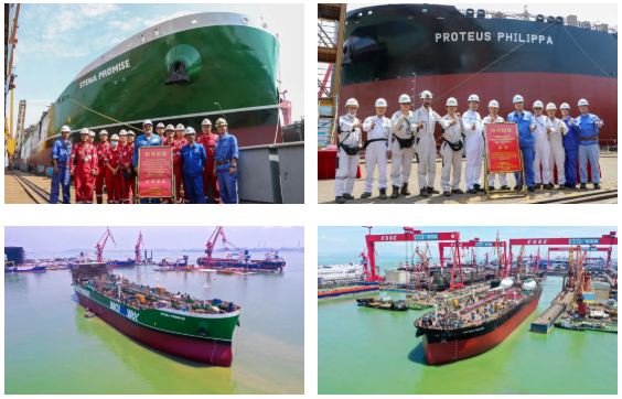 廣船國際兩艘雙燃料油船同日出塢