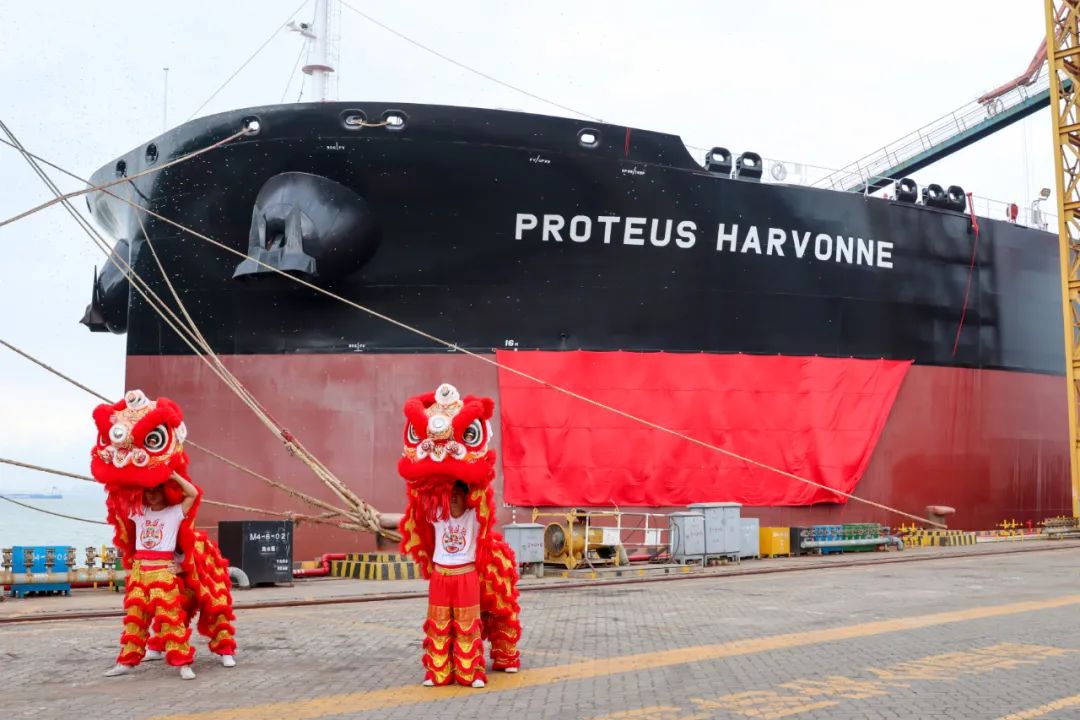 5月26日,中國船舶集團旗下廣船國際為交銀租賃建造的11.99萬噸LNG(液化天然氣)/燃油雙燃料原油/成品油船首制船通過線上視頻形式連線英國倫敦、中國上海、廣州三地完成“云命名”。殼牌公司全球航運總裁 Harvonne Yap 將該船命名為“ PROTEUS HARVONNE ”號