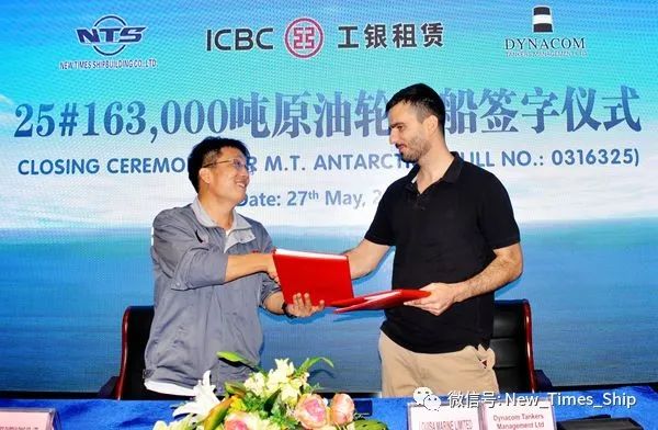 5月27日,新時(shí)代造船為希臘船東達(dá)能孔公司建造的163000噸油船“ANTARCTICA”號(hào)交付,這是該船東在新時(shí)代造船訂制建造的第41艘船舶,也是該公司此次訂制的5艘163000噸系列油船的中最后一艘船舶。船舶簽字交付儀式在八樓會(huì)議室舉行,總經(jīng)理劉海金、常務(wù)副總經(jīng)理張玉永與希臘船東達(dá)能孔公司現(xiàn)場(chǎng)經(jīng)理Michail Papadopoulos等嘉賓一起出席活動(dòng)。張玉永與Michail Papadopoulos分別在交船文本上簽字,25#163000噸油船正式交付運(yùn)營(yíng)。