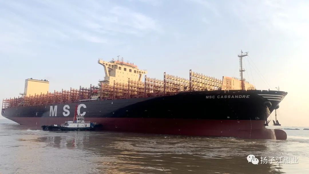 “MSC CASSANDRE”輪的交付,標(biāo)志著揚(yáng)子江船業(yè)集團(tuán)為SEASPAN船東續(xù)建的5艘12200TEU系列超大型集裝箱船項(xiàng)目圓滿完成。