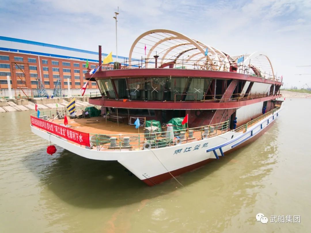 6月6日,由武船集團(tuán)為武漢兩江游覽輪船旅游有限公司建造的宴會(huì)型“兩江盤龍”輪順利下水。該船姊妹船觀光型“兩江晴川”輪已于5月25日順利下水。