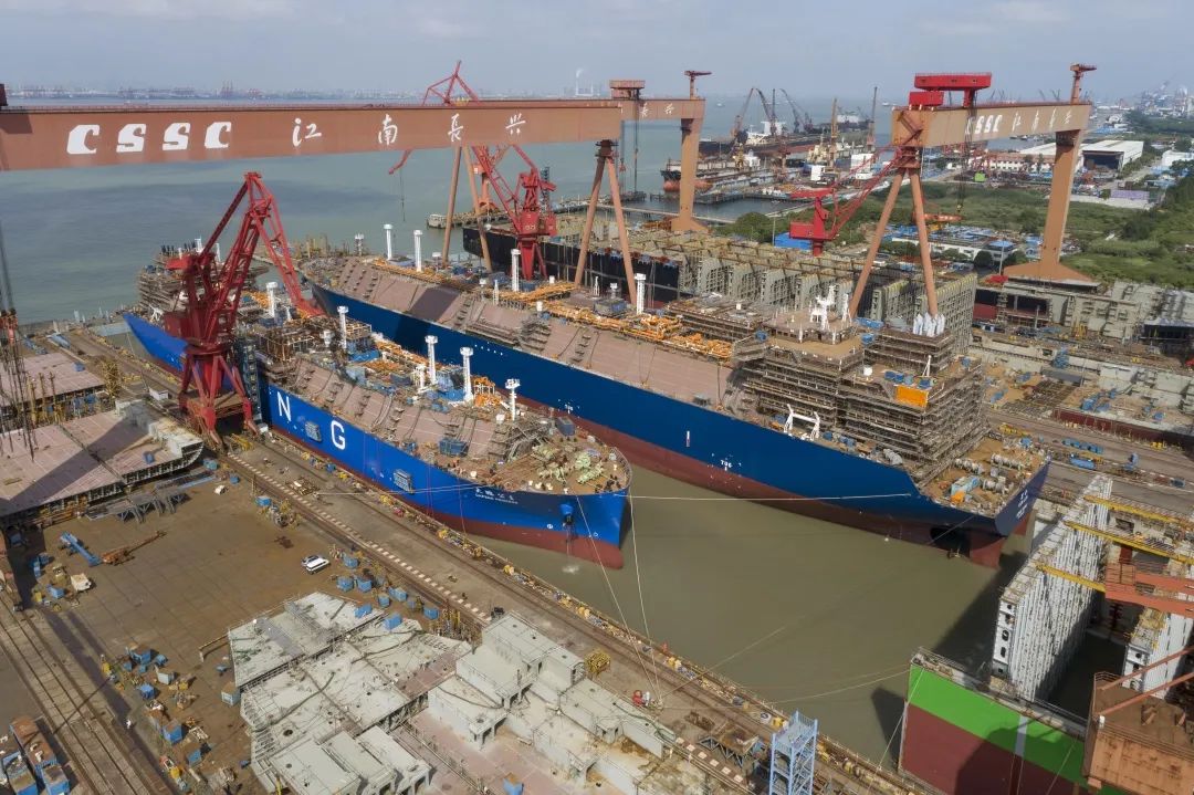 6月8日,在滬東中華造船長(zhǎng)興造船基地2號(hào)船塢內(nèi),再度呈現(xiàn)一艘174000立方LNG船、一艘80000立方米LNG船、半艘24000TEU超大型集裝箱船3船同時(shí)起浮,2船雙雙牽引出塢的盛景。至此,公司自4月25日復(fù)工復(fù)產(chǎn)以來,已實(shí)現(xiàn)交船、出塢、試航、開工等10大生產(chǎn)節(jié)點(diǎn),跑出了“加速度”,駛?cè)肓?ldquo;快車道”,為上海船舶工業(yè)全面復(fù)工復(fù)產(chǎn)又添亮點(diǎn)。