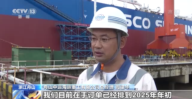 舟山中遠(yuǎn)海運重工有限公司總經(jīng)理 周建華:目前船塢在建有20到30艘船,主要得益于長三角一體化。