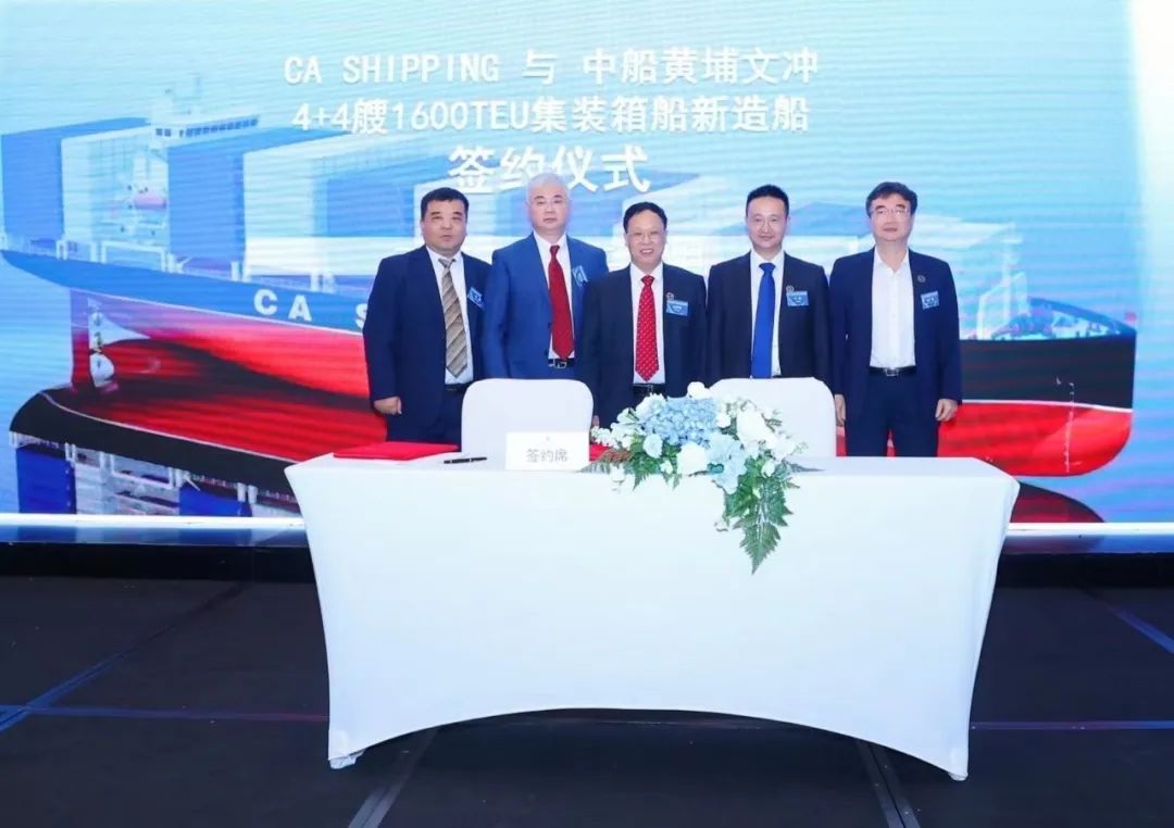 6月28日,中國(guó)船舶集團(tuán)旗下中船黃埔文沖船舶有限公司與CA SHIPPING簽署了4+4艘1600TEU集裝箱船建造合同。