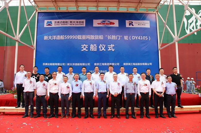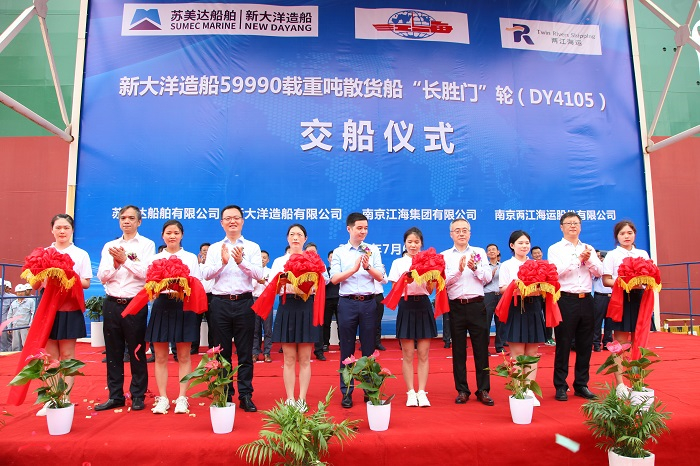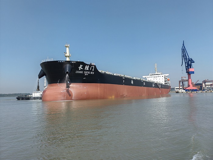 新大洋造船交付59990噸內(nèi)貿(mào)散貨船“長勝門”輪