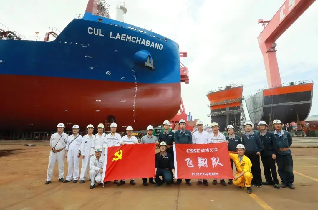 7月16日,中國船舶集團(tuán)旗下黃埔文沖公司為中聯(lián)航運股份有限公司批量建造的4艘1930TEU箱船“收官船”在船海事業(yè)部水平船臺順利下水。
