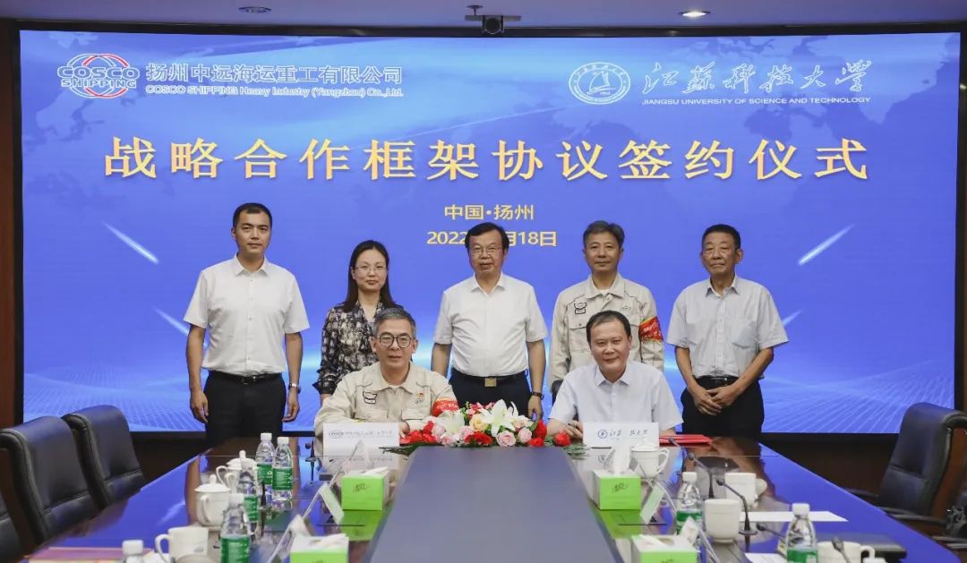 揚(yáng)州中遠(yuǎn)海運(yùn)重工與江蘇科技大學(xué)舉行戰(zhàn)略合作框架協(xié)議簽約儀式