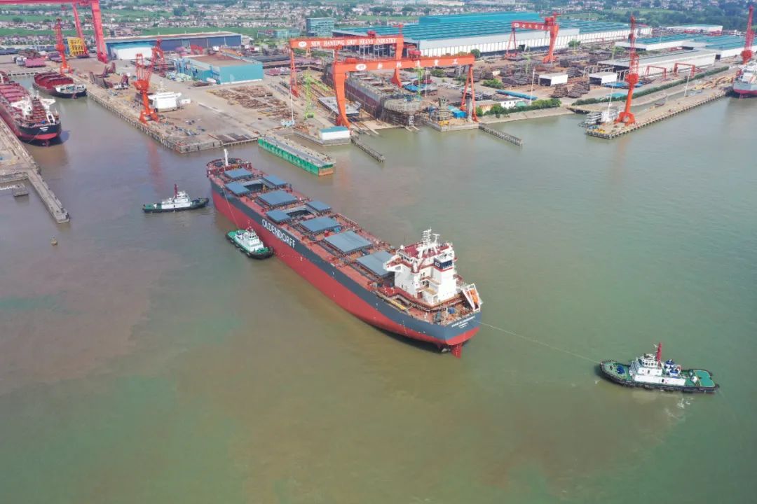 8月6日, 新韓通為德國(guó)Oldendorff公司建造的兩艘8.2萬(wàn)噸散貨輪順利出塢。該船入級(jí)LR船級(jí)社。該系列船由上海船舶研究設(shè)計(jì)院設(shè)計(jì),總長(zhǎng)229.00米,型寬32.26米,型深20.35米。