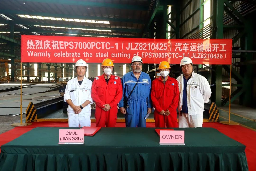 8月10日,招商工業(yè)南京金陵船廠為新加坡EPS公司建造的首艘7000車位雙燃料汽車運輸船在儀征廠區(qū)順利開工,船東駐廠代表、船級社駐廠代表及南京金陵項目組有關(guān)人員參加了開工儀式。