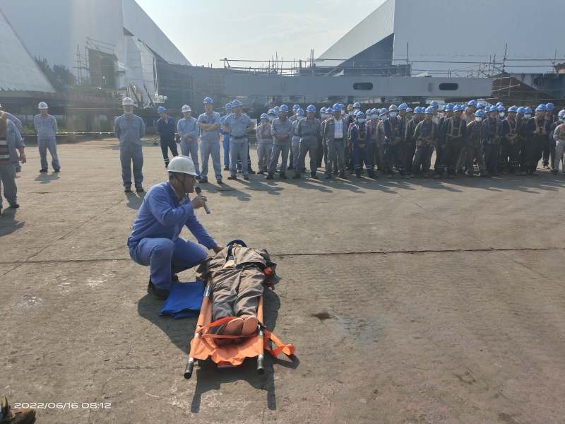 為提高現(xiàn)場員工高溫中暑應(yīng)急救援能力,保證員工的生命健康和安全,新大洋造船各生產(chǎn)部門還組織防中暑應(yīng)急救援演練,在增強(qiáng)安全意識的同時,提升職工的應(yīng)急能力和自救能力,面對突發(fā)情況時知道如何用正確的方法去保護(hù)自己和幫助別人。