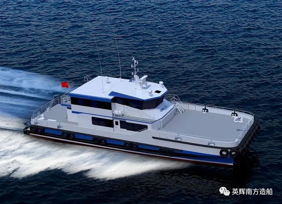 該項(xiàng)目船舶是英輝南方的主建船型和重點(diǎn)產(chǎn)品,船舶總長30.25米,總寬9.50米,型深3.30米,吃水1.7米,設(shè)計(jì)航速25節(jié),續(xù)航力大于500海里,近海航區(qū),入級中國船級社(CCS)。