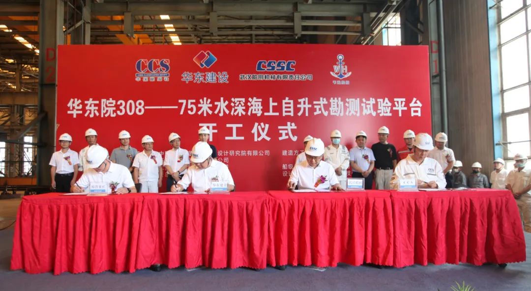 2022年8月26日,中國(guó)船舶武漢船機(jī)公司承建的華東院 308 -75米水深海上自升式勘測(cè)試驗(yàn)平臺(tái)在青島海西重機(jī)公司順利開(kāi)工。