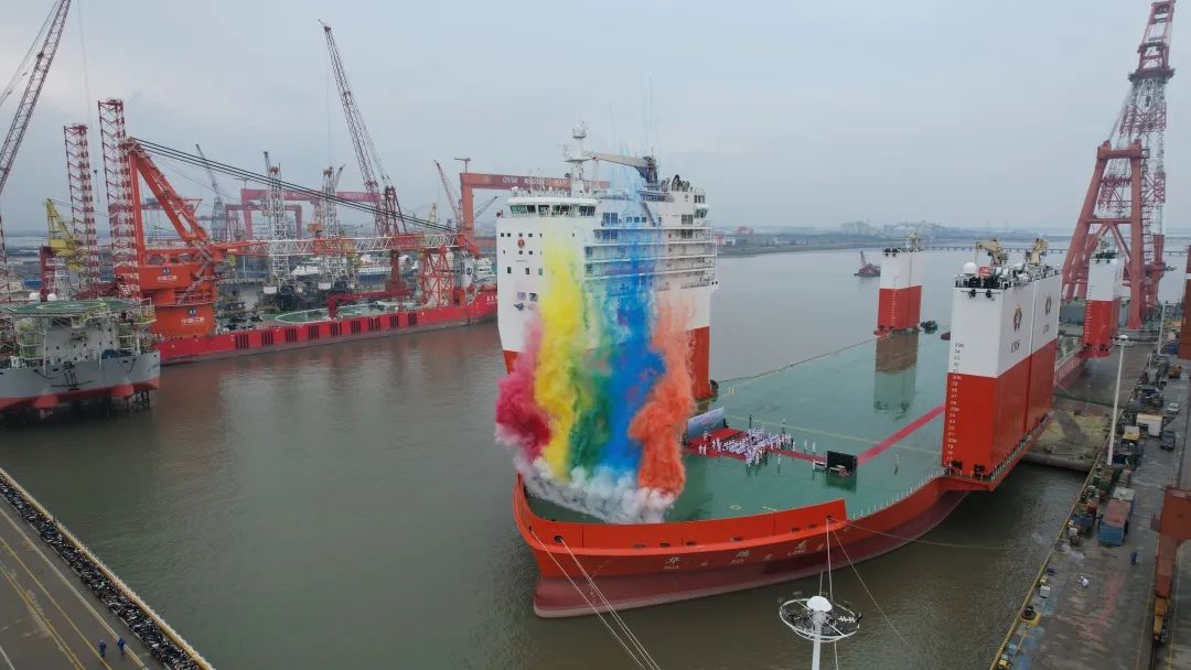 招商工業(yè)海門基地8萬噸半潛打撈工程船命名交付