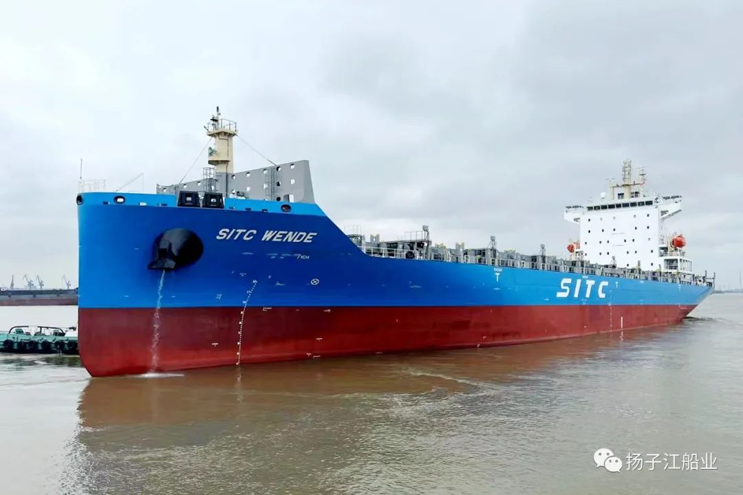 8月30日,“SITC WENDE”輪離開新?lián)P子造船碼頭,開啟交付后的首航。
