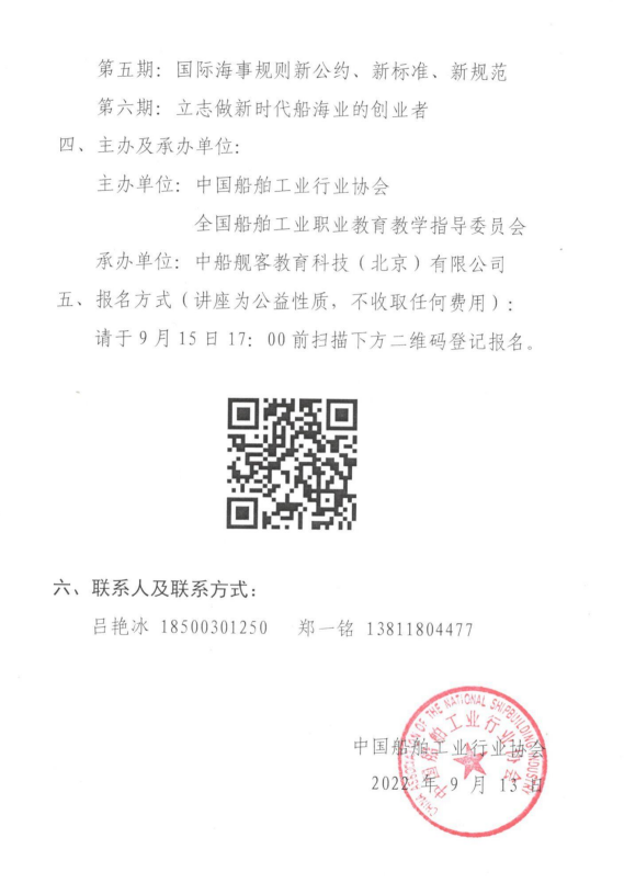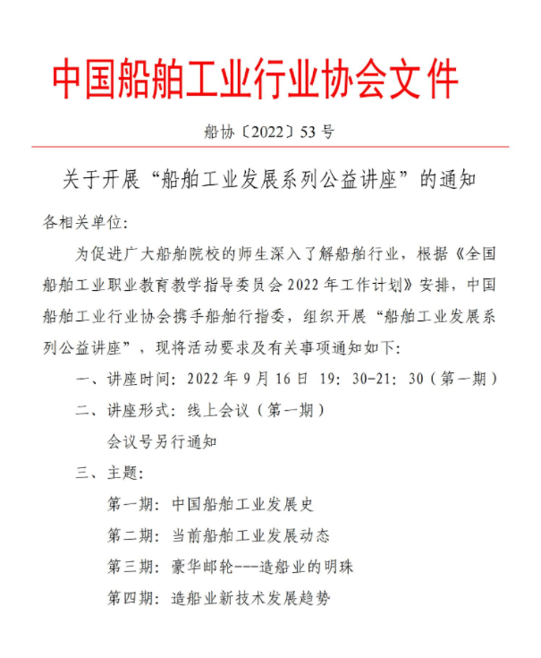 關(guān)于開(kāi)展“船舶工業(yè)發(fā)展系列公益講座”的通知