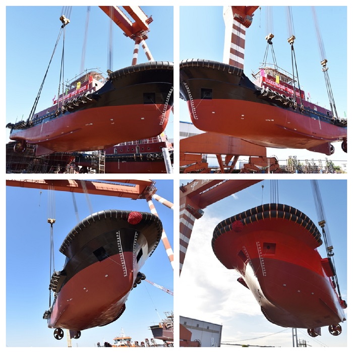 2022年10月10日,江蘇省鎮(zhèn)江船廠(集團)有限公司以特有的吊裝下水方式,順利完成了為舟山市浙石化舟港拖輪有限公司、連云港徐圩港口投資集團有限公司建造的4艘全回轉拖船的下水,創(chuàng)造了國內單日船舶吊裝下水數量新的歷史記錄,掀起了決戰(zhàn)四季度,沖刺全年生產建設目標任務的新高潮。