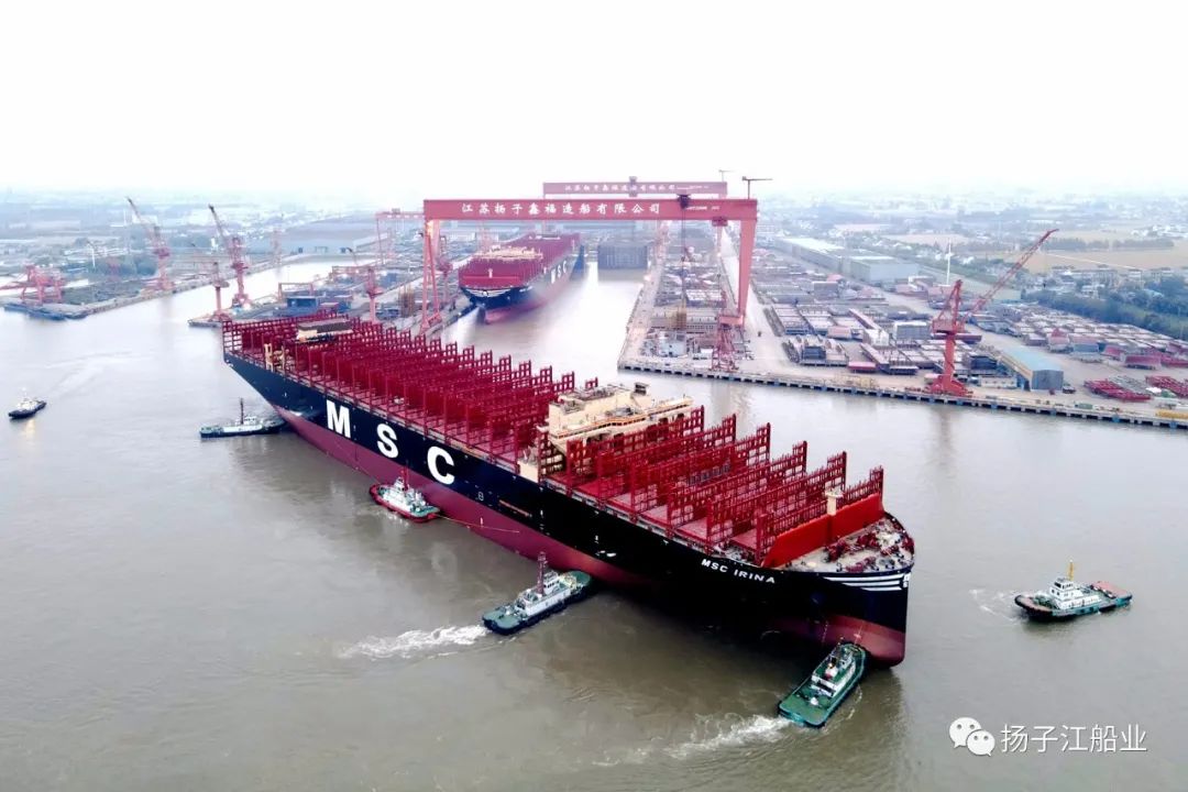 10月29日,揚子江船業(yè)集團旗下?lián)P子鑫福造船分別為交銀租賃、國銀租賃、地中海航運(MSC)建造的兩艘全球最大裝箱量24000TEU超大型集裝箱船順利出塢。