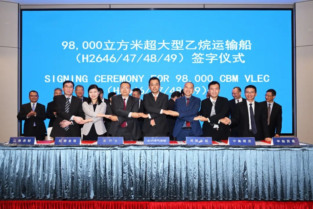 11月2日,中國(guó)船舶集團(tuán)旗下江南造船舉行了與山東海洋集團(tuán)下屬太平洋氣體船(香港)控股有限公司簽署4艘99000立方米超大型乙烷運(yùn)輸船(VLEC)建造合同的儀式。