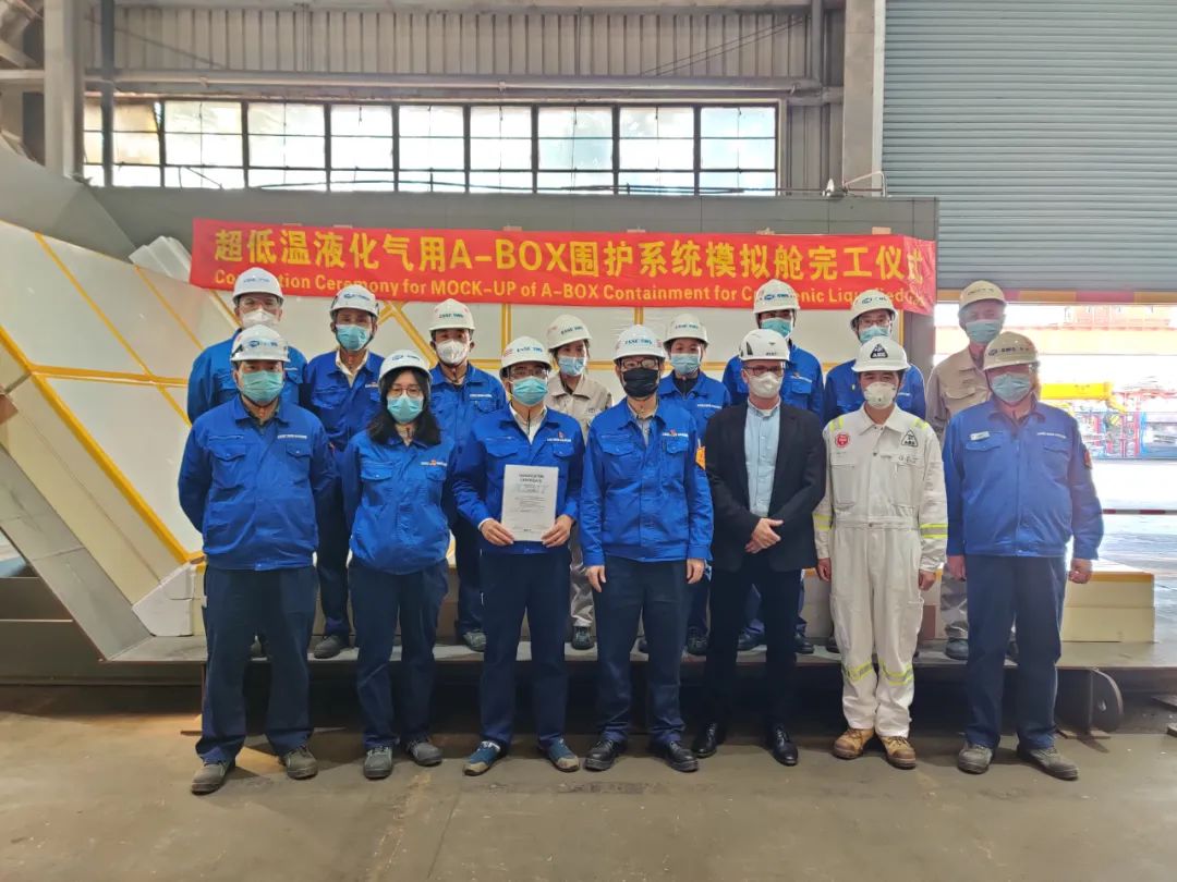 外高橋造船舉行超低溫液化氣用A-BOX圍護系統(tǒng)模擬艙次屏壁復合絕緣完工暨施工資質認可授權儀式