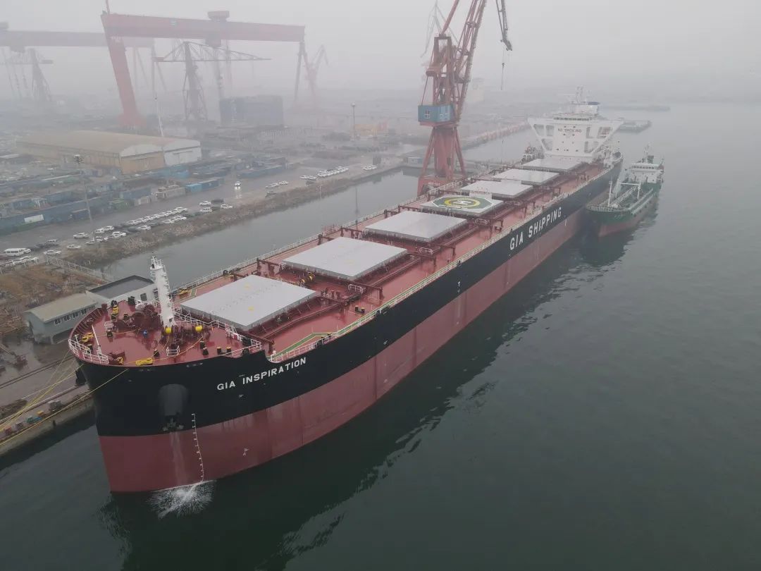 11月10日,大船天津?yàn)樘┲菁魏胶_\(yùn)有限公司建造的8.5萬噸散貨船1號(hào)船 以提前合同期141天的優(yōu)異成績順利交付,標(biāo)志著大船天津造船流程全線貫通。