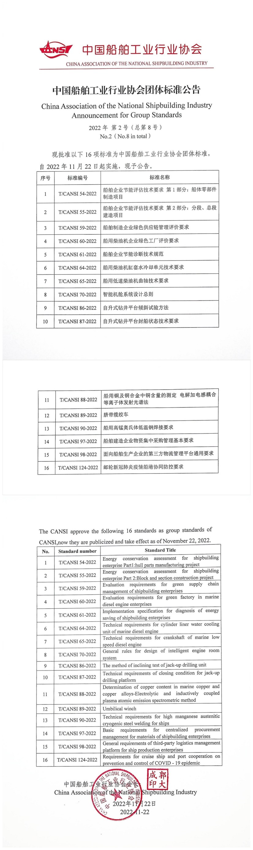 中國船舶工業(yè)行業(yè)協(xié)會團體標(biāo)準(zhǔn)公告(總第8號)