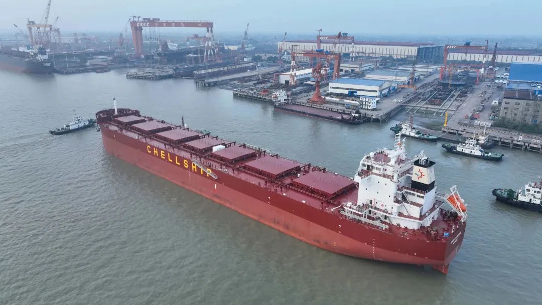 11月24日,中國船舶集團旗下中船澄西船舶修造有限公司為香港CHELLARAM公司建造的82000噸散貨船“DARYA LACHMI”輪在江陰以視頻“云交付”的方式簽字交付。