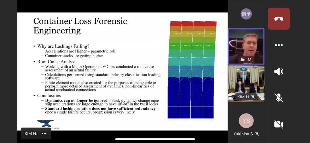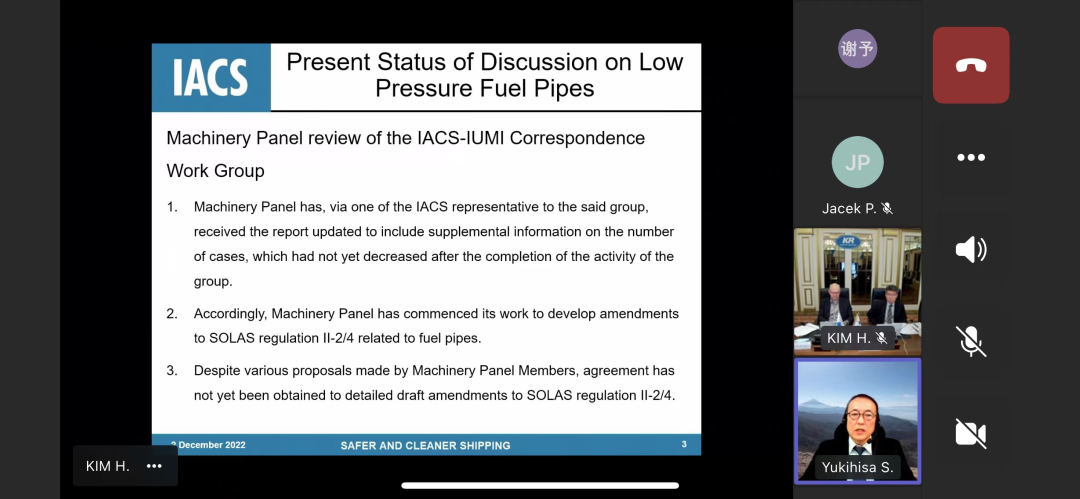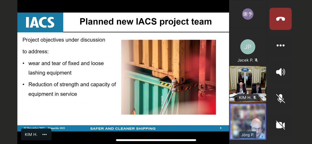 海洋安全議題,此次會議重點討論了船舶低壓燃料管系安全性、船舶系泊系統(tǒng)(集裝箱纜繩)安全性等方面。IACS機械工作組主席Yukihisa Shibata發(fā)言表示,工作組計劃對SOLAS公約中有關(guān)低壓燃油管安全性的表述提出修訂意見,包括防泄漏、防爆、防火、有效電子監(jiān)控等方面內(nèi)容,目前正在廣泛搜集行業(yè)技術(shù)觀點,計劃在2023年開始,向IMO安全委員會及相關(guān)分工作組會議提供提案或評論。IACS船體工作組秘書長Jörg Peschmann發(fā)言指出,結(jié)合船東、貨主以及保險公司的數(shù)據(jù)來看,集裝箱船運輸過程中出現(xiàn)的集裝箱海損(遺失),主要原因中系泊纜繩質(zhì)量低、系泊裝置老舊化和系泊方式不合規(guī)占比明顯,工作組將在該領(lǐng)域提出更多技術(shù)和標(biāo)準(zhǔn)建議。